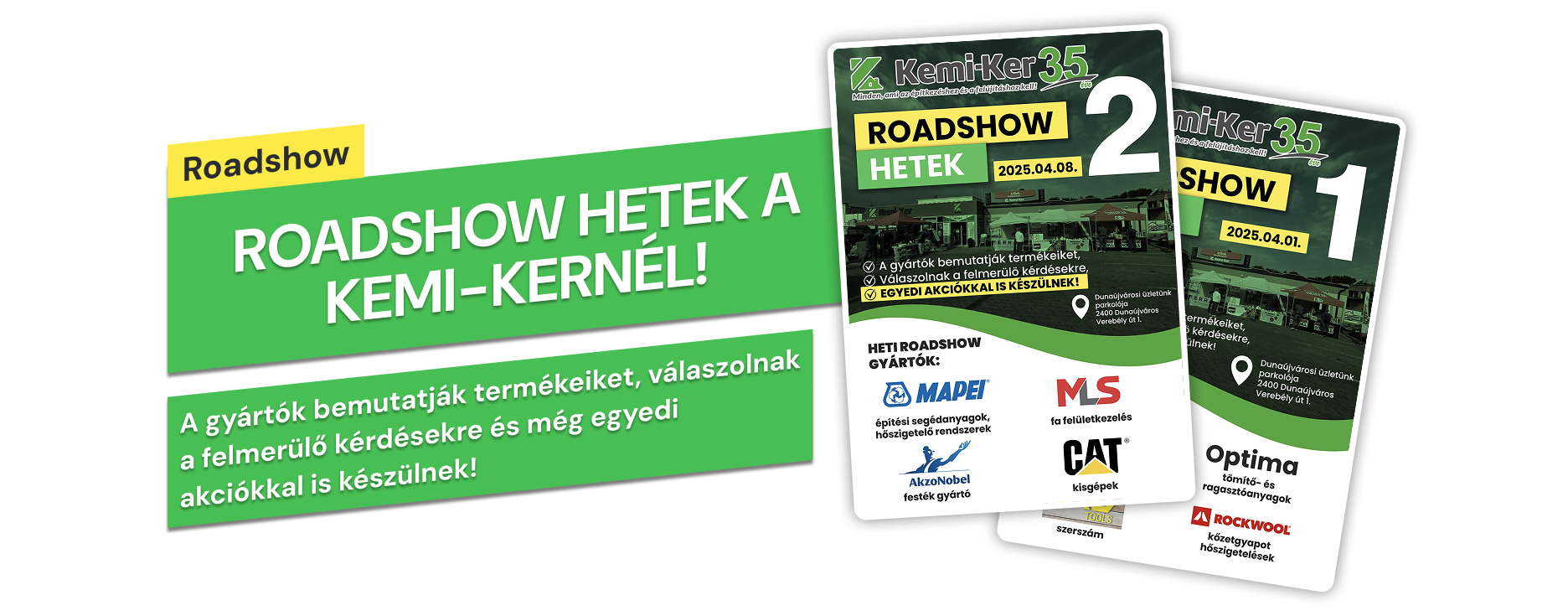 A Kemi-ker Kft. idén is folytatja szeretett hagyományát: immár 35 éve szolgáljuk ki megbízhatóan az építőipart, és már sokadik tavasszal rendezzük meg a Roadshow heteket , ahol személyesen is találkozhattok a gyártók képviselőivel!